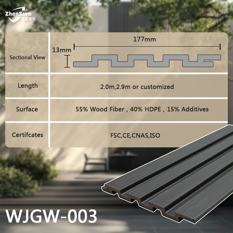 Revêtement mural en bois composite WPC recyclé, type bois écologique, pour décoration murale extérieure, façade à lattes