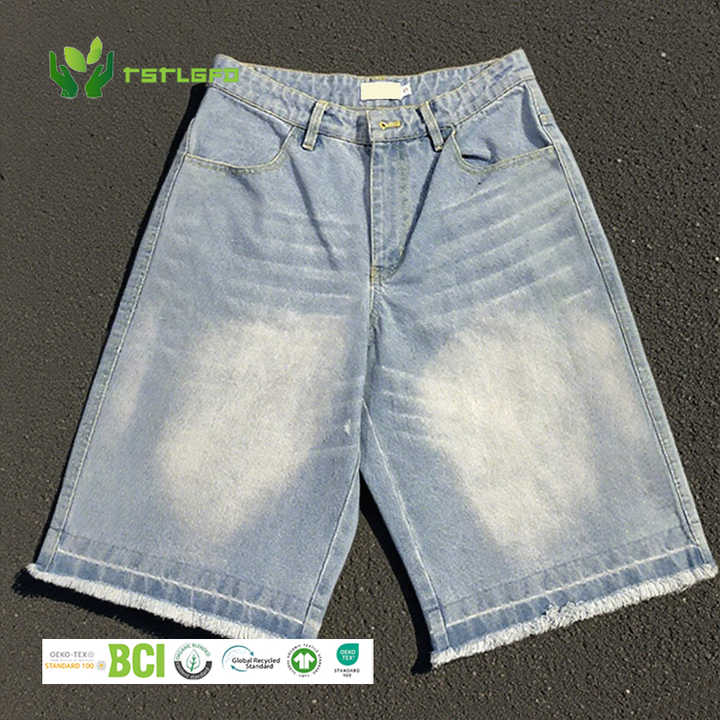 Streetwear Y2k en tissu recyclé pour hommes, baggy long jorts en strass, short en jean surdimensionné délavé à l'acide pour hommes