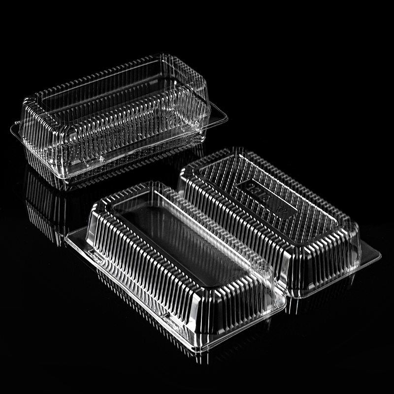 Boîtes alimentaires en plastique recyclé en gros, contenants rectangulaires pour pâtisserie, jetables, transparents, pour pain, à emporter, emballage pour en-cas