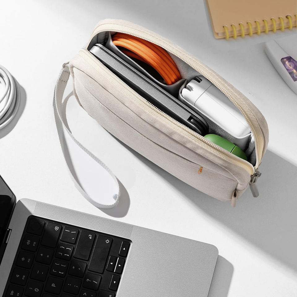 Sac de rangement d'accessoires électroniques numériques compacts portables en polyester recyclé Organisateur de câble simple Fermeture à glissière pour gadget de voyage