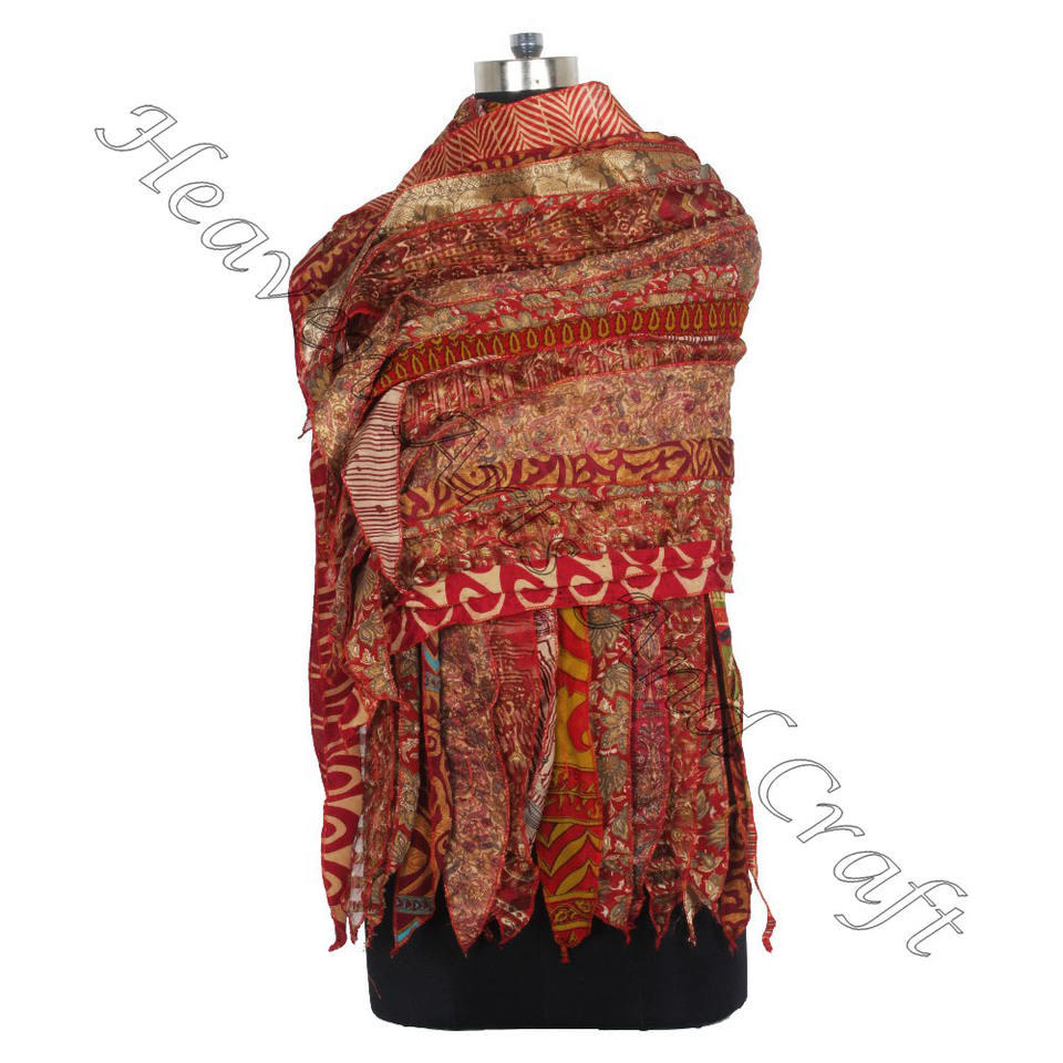 Sari en soie recyclée 15 bandes écharpes faites à la main de créateur étole châles SC535 soie fine en gros recyclé Vintage Sari écharpe pour femme