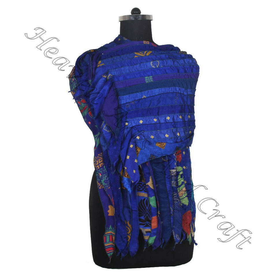 Sari en soie recyclée 15 bandes écharpes faites à la main de concepteur étole châles SC669 soie fine en gros recyclé Vintage Sari femme écharpe