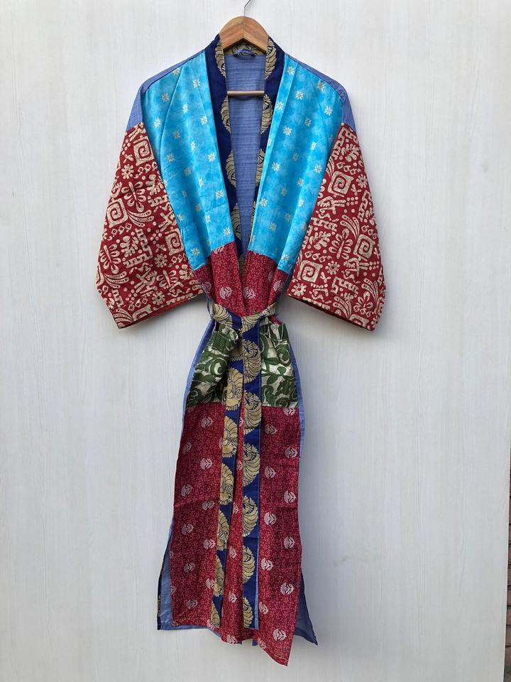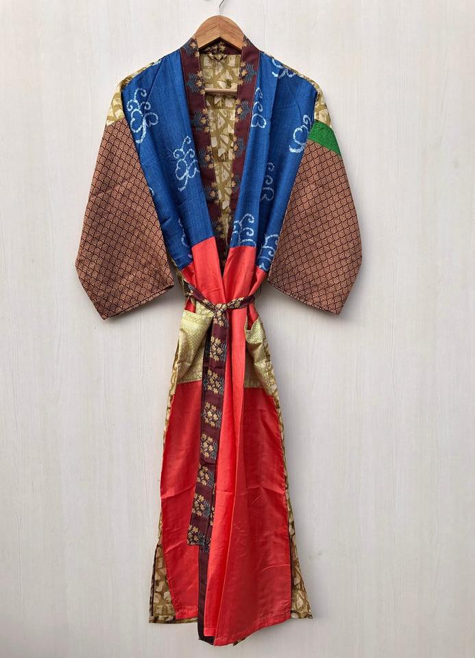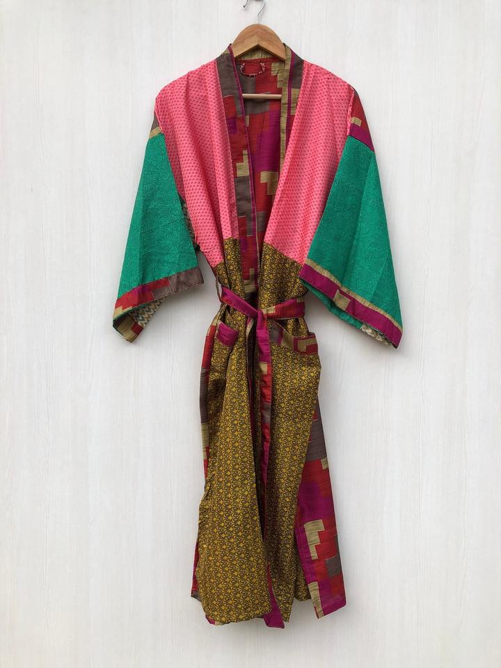 Robe Saree en soie florale faite à la main Kimono vintage recyclé pour son cadeau de Kimono d'été et de printemps