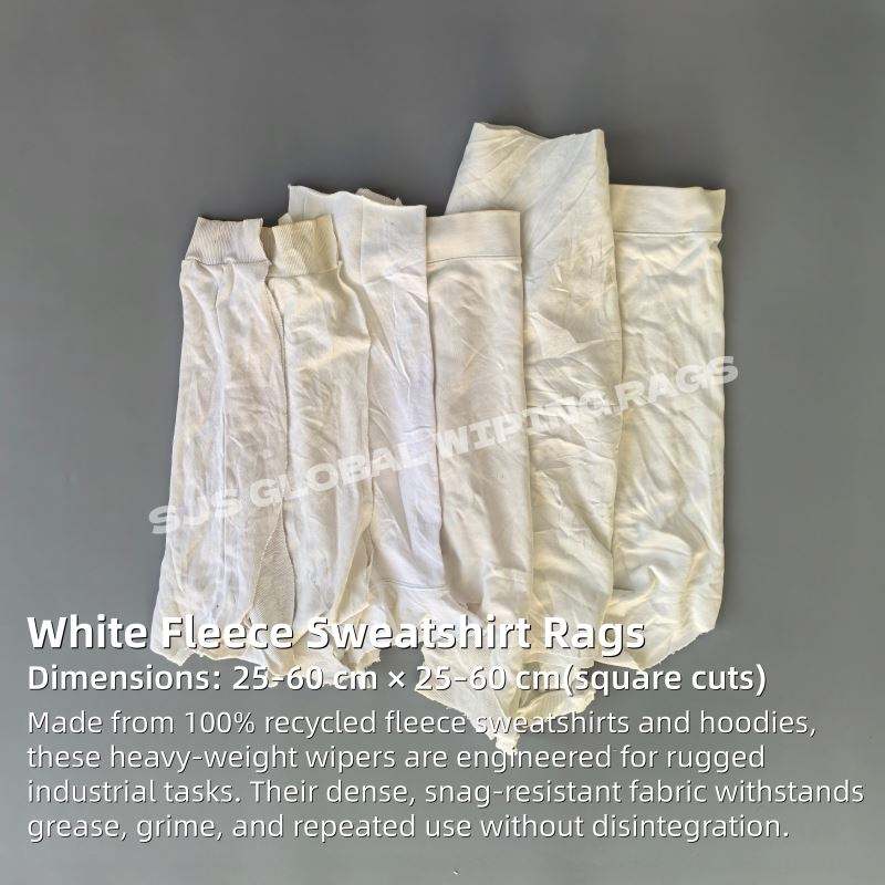 Chiffons en polaire blanc recyclé 50-110 cm, blanc pur, 100 % coton récupéré, lavés, pour le nettoyage