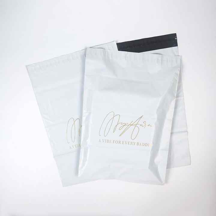 Sacs d'expédition en poly blanc recyclé avec logo personnalisé, enveloppe d'emballage, sac d'expédition avec fermeture autocollante