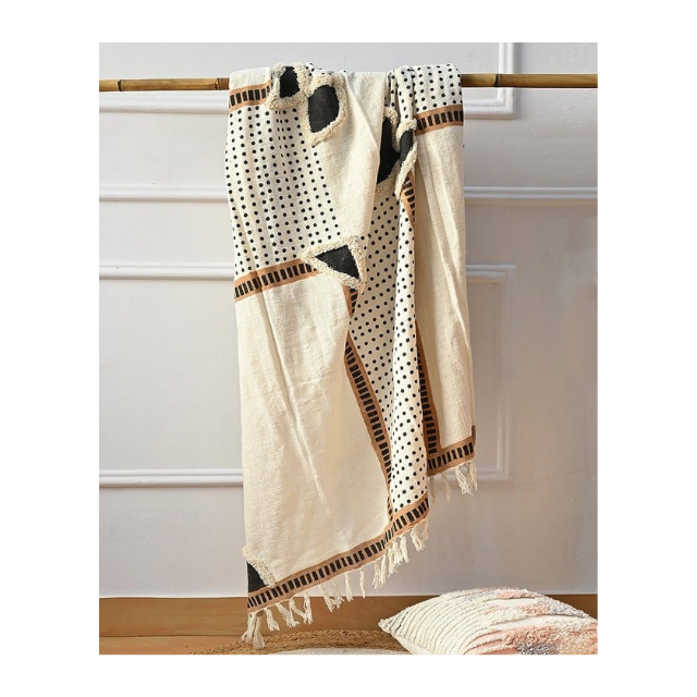 Recycled Yarn 60x80in Jacquard Texture Lounge Throw Fringe Edges GRS Certified Option For Buyers Searching Sustainable Textiles