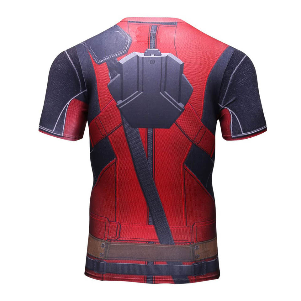 T-shirt de compression rouge imprimé par transfert thermique pour homme – Séchage rapide, respirant, extensible dans quatre directions, coupe ajustée, pour la course en extérieur