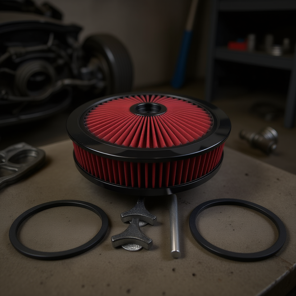 Kit de filtre à air rouge 14 x 3 pouces, col de 5 1/8 pouces, en fibre synthétique plissée pour carburateur