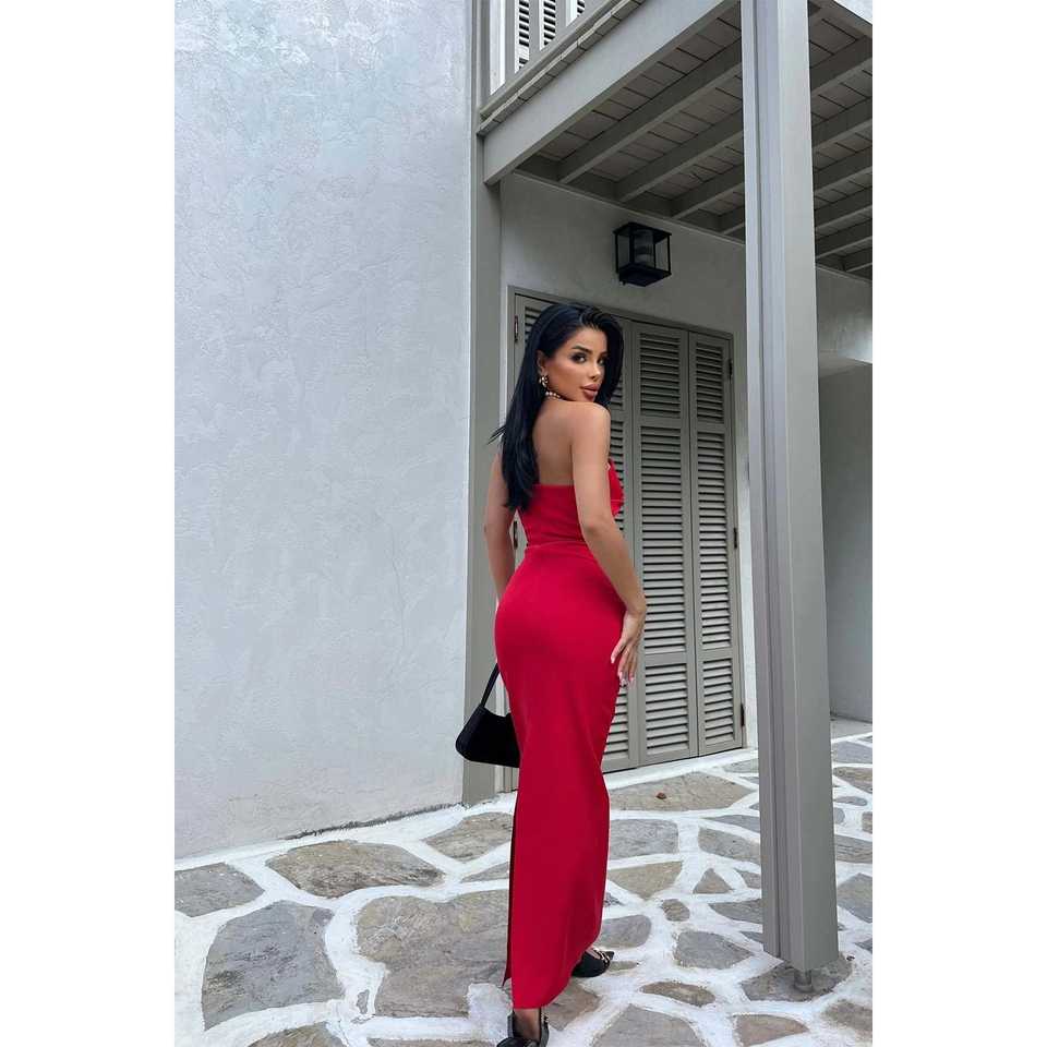 Robe de soirée rouge de créateur avec paillettes, strass, drapés, perles, fleurs, longue, pour soirée, longueur au sol, taille XS
