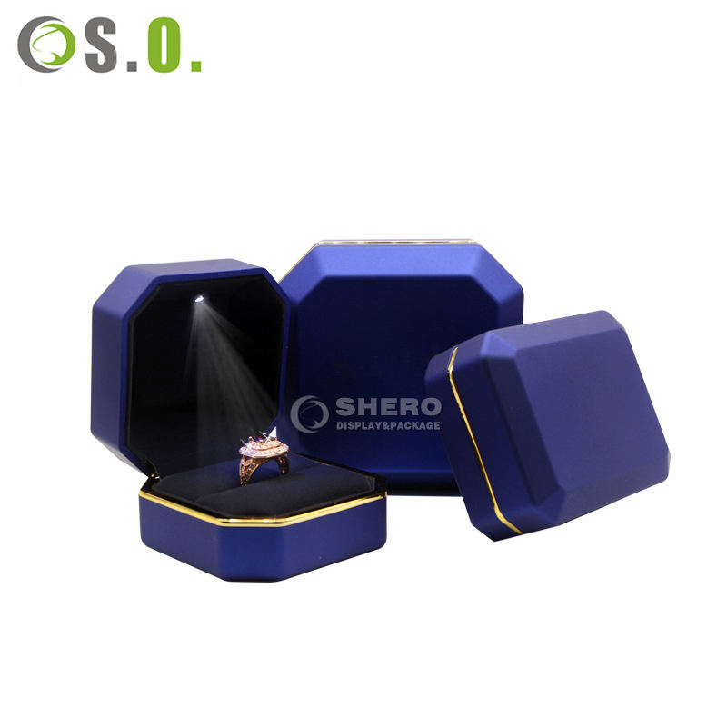 Boîtes à bijoux en plastique LED personnalisées rouge et bleu de qualité supérieure pour colliers, bracelets, bagues, boucles d'oreilles, boîtes à bijoux