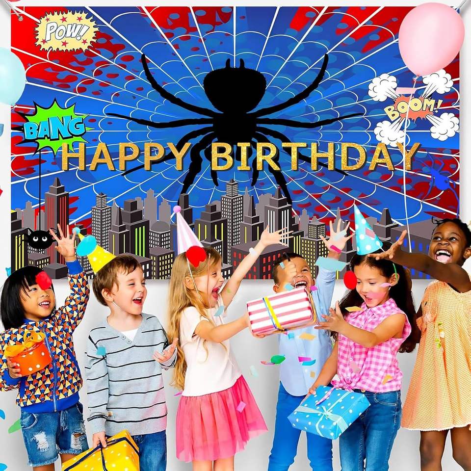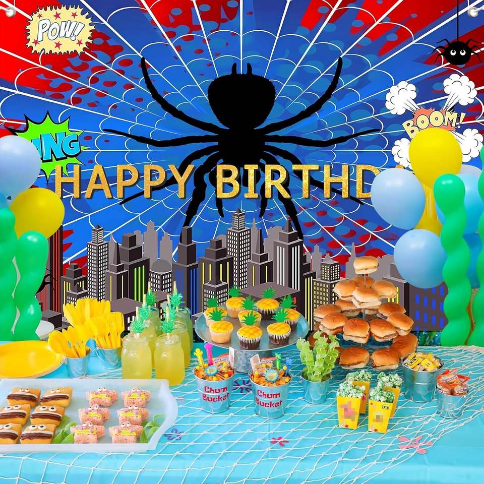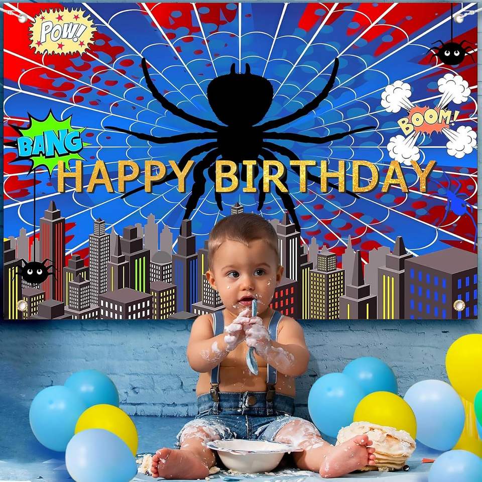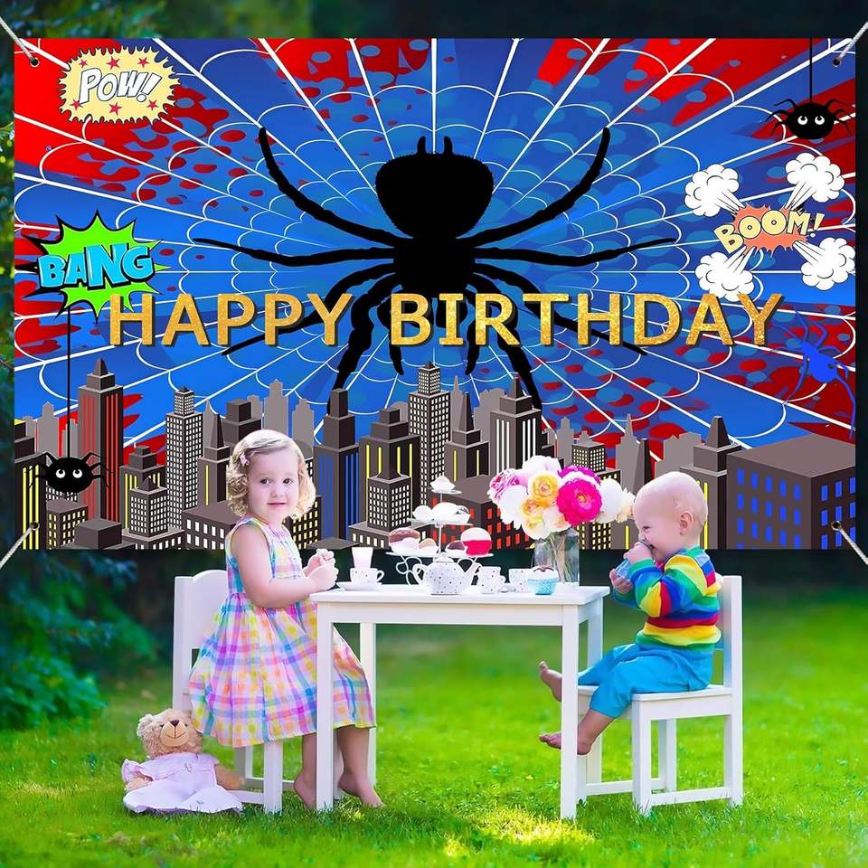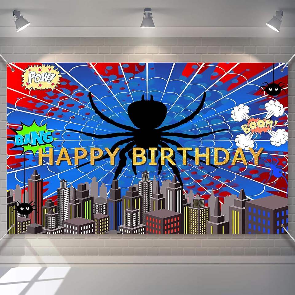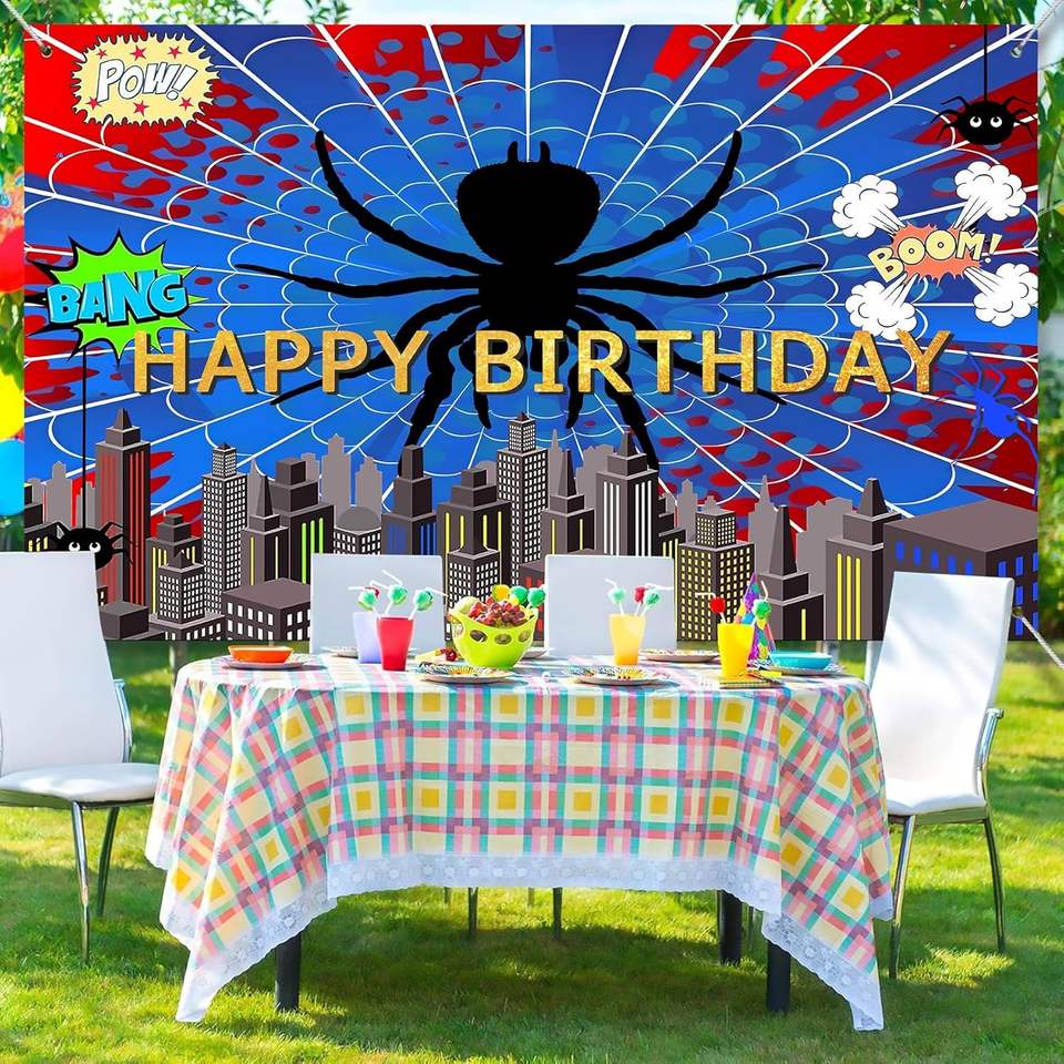 Toile de fond photo super-héros toile d'araignée rouge et bleue, bannière décorative vibrante toile d'araignée, fond de décoration pour anniversaire de garçons et baby shower