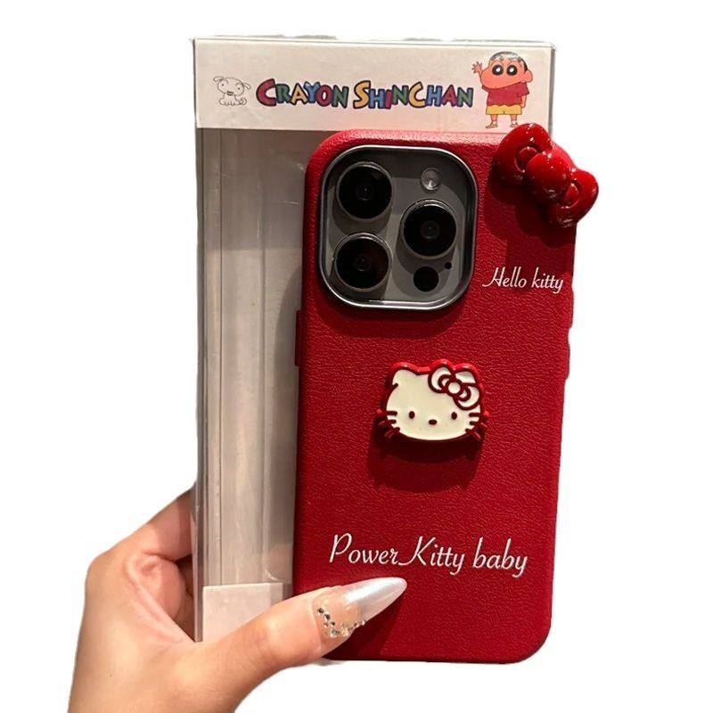 Red Bow Kt Cat pour Apple 16 Pro Max coque de téléphone pour filles Occasion festive housse de protection en cuir Texture pour iPhone 15 14 13