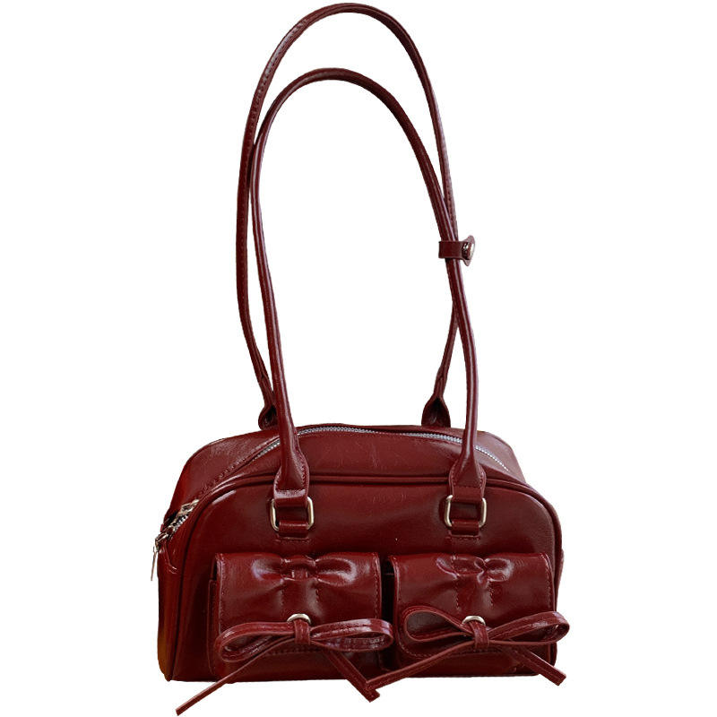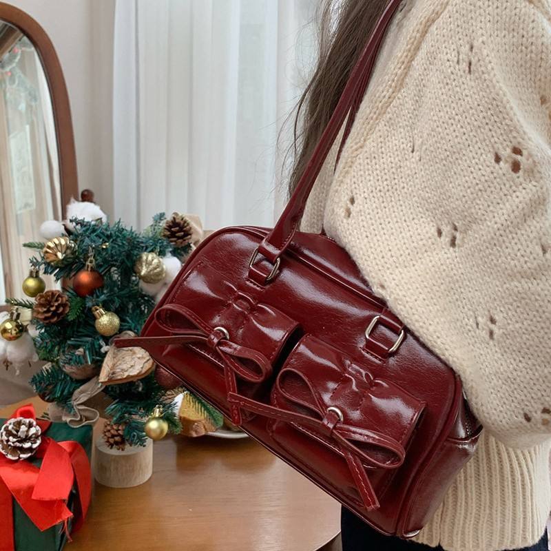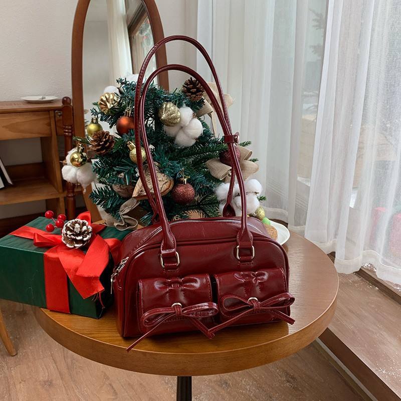 Sac à bandoulière rouge avec nœud décoratif, fermeture éclair horizontale carrée, pour tenues quotidiennes, sac à main pour femme, hiver 2024