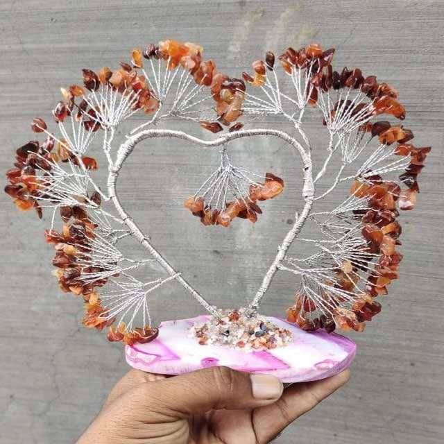 Matériau de pierre précieuse en cristal en forme de coeur d'arbre d'argent de cornaline rouge