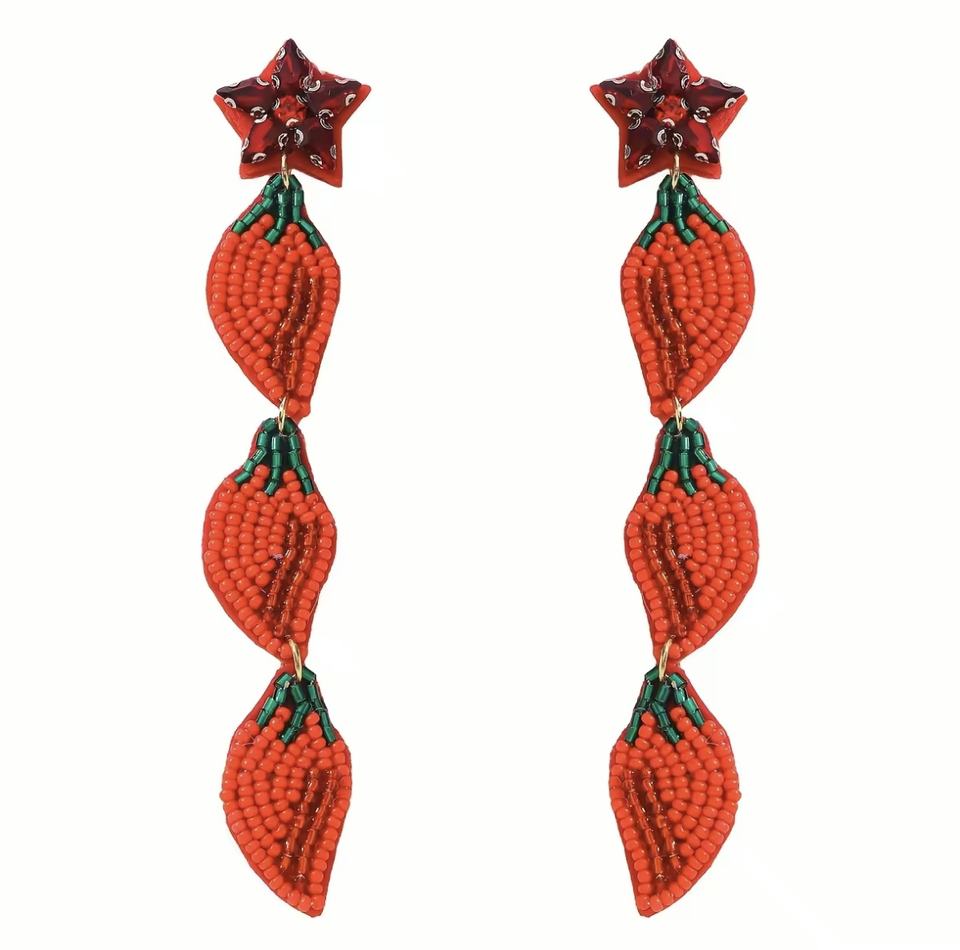 Nouveautés Boucles d'oreilles clous classiques unisexe en perles de verre faites à la main, couleur piment rouge, avec lettres et perles de rocaille, pour enseignant(e)s et mariages