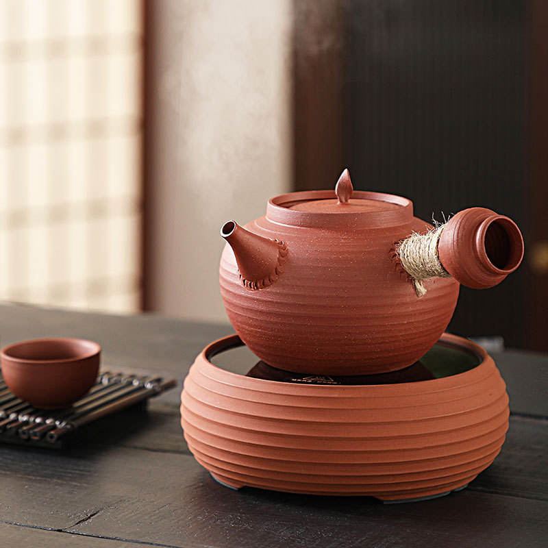 Pot de sable en argile rouge poignée latérale bouilloire de couverture de saut faite à la main poêle chinois bouilloire à thé Pot mince ensemble de cuisinière électrique en céramique