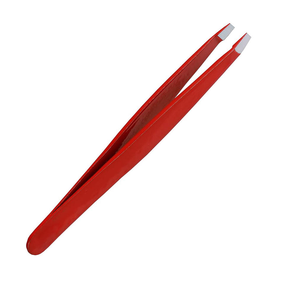 Red Coated Eyebrow Hair Pluck Tweezers Slanted and Flat Tip for Shaping and Setting for Beauty Use