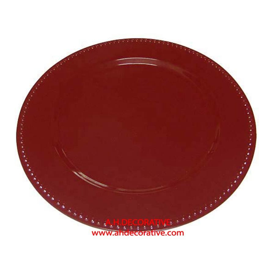 Assiette ronde en fer à revêtement rouge Assiette de service pour mariage Assiette de chargeur ronde en métal de style nordique à vendre