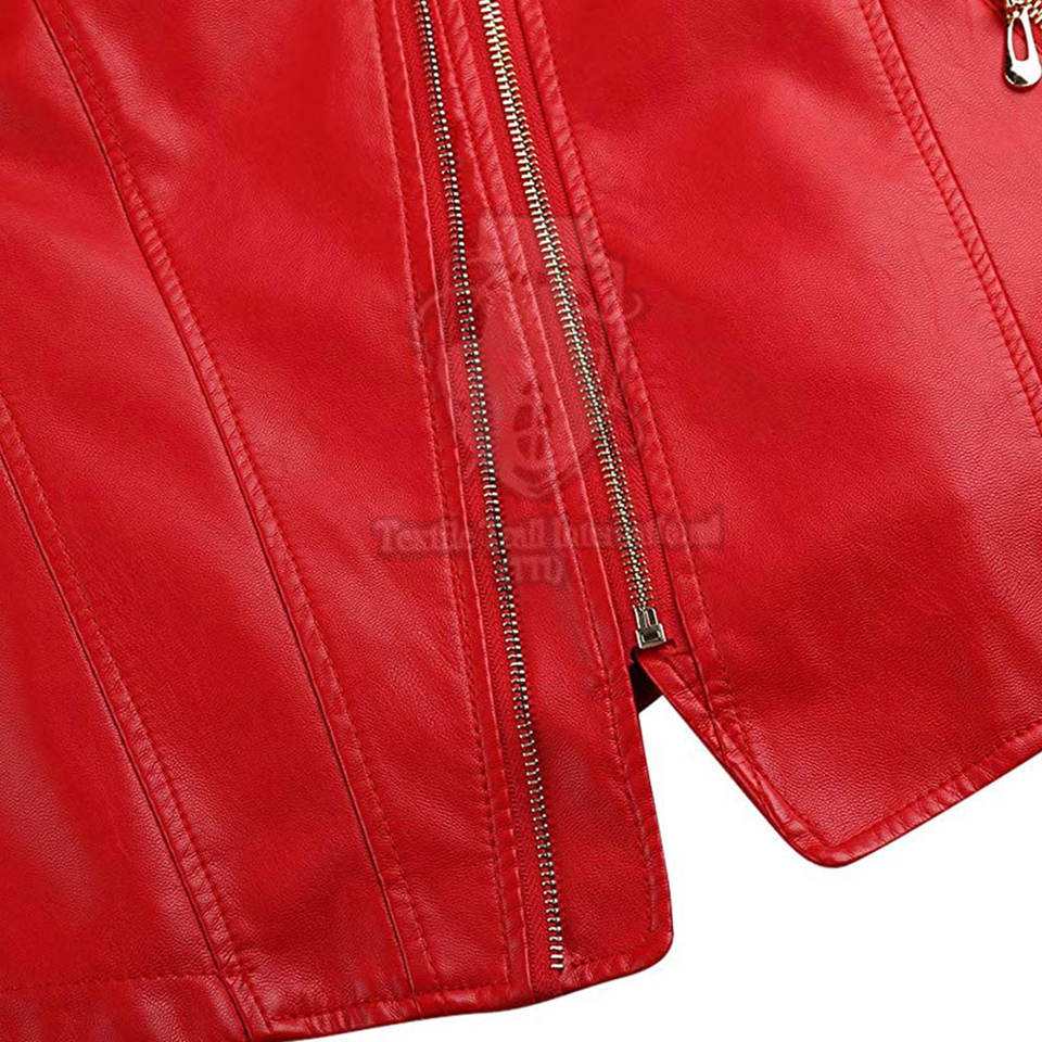 Veste en cuir véritable pour femmes, style tendance, tissu doux respirant de couleur rouge, design unique, vêtements de mode pour femmes