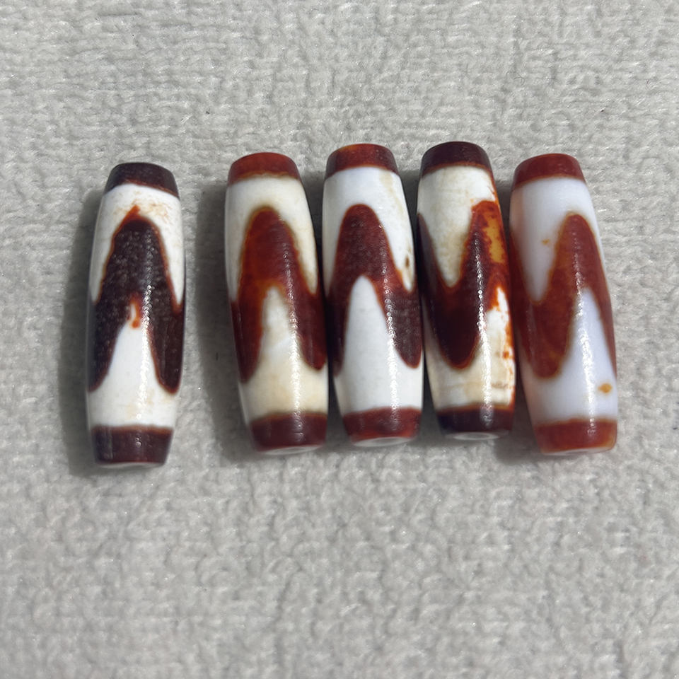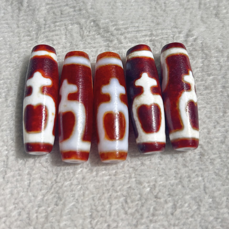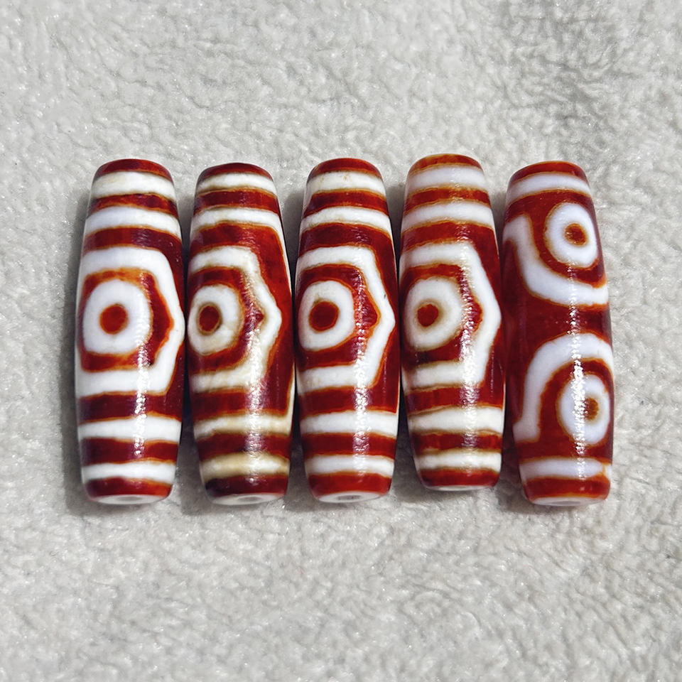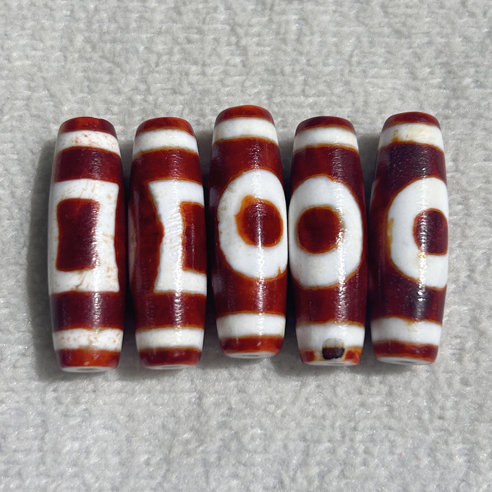 Perles Dzi anciennes à trois yeux en agate naturelle de couleur rouge