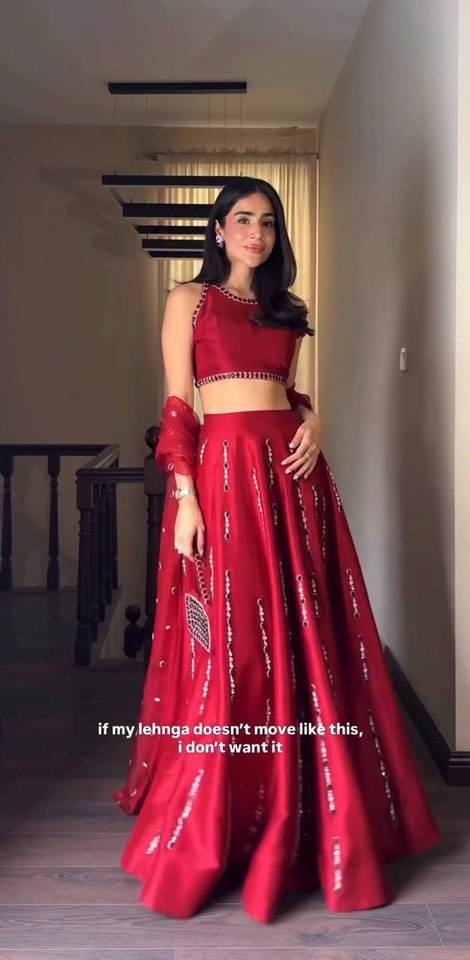 Ensemble de lehenga en tissu de soie pure de couleur rouge avec broderie multi-fils et travail d'embroidery, et dupatta en tissu naturel, idéal pour les mariages et les soirées.