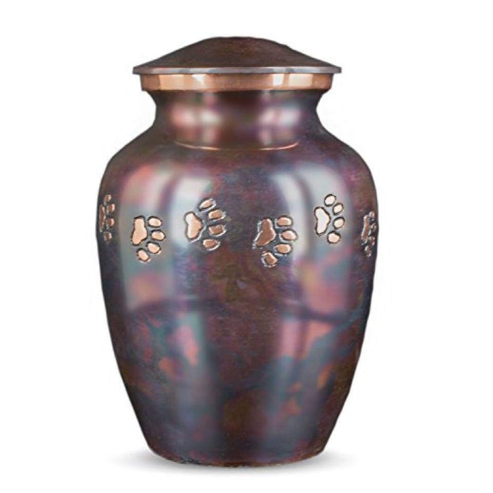Urnes funéraires pour animaux de compagnie en laiton avec un beau motif de patte et un fini rouge sur le dessus, urnes classiques en métal pour animaux de compagnie