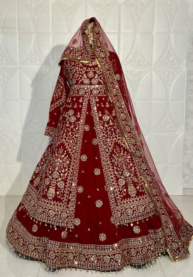 Couleur rouge 9000 velours avec belle broderie travail nuptiale lehenga Collection par Royal export surat inde