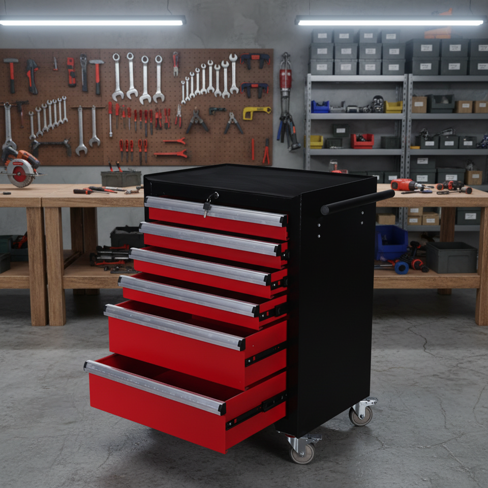 Armoire à outils rouge avec corps noir, grande taille OEM, capacité de charge 500 kg, qualité 4A, vente directe usine, avec vidéo de test réelle
