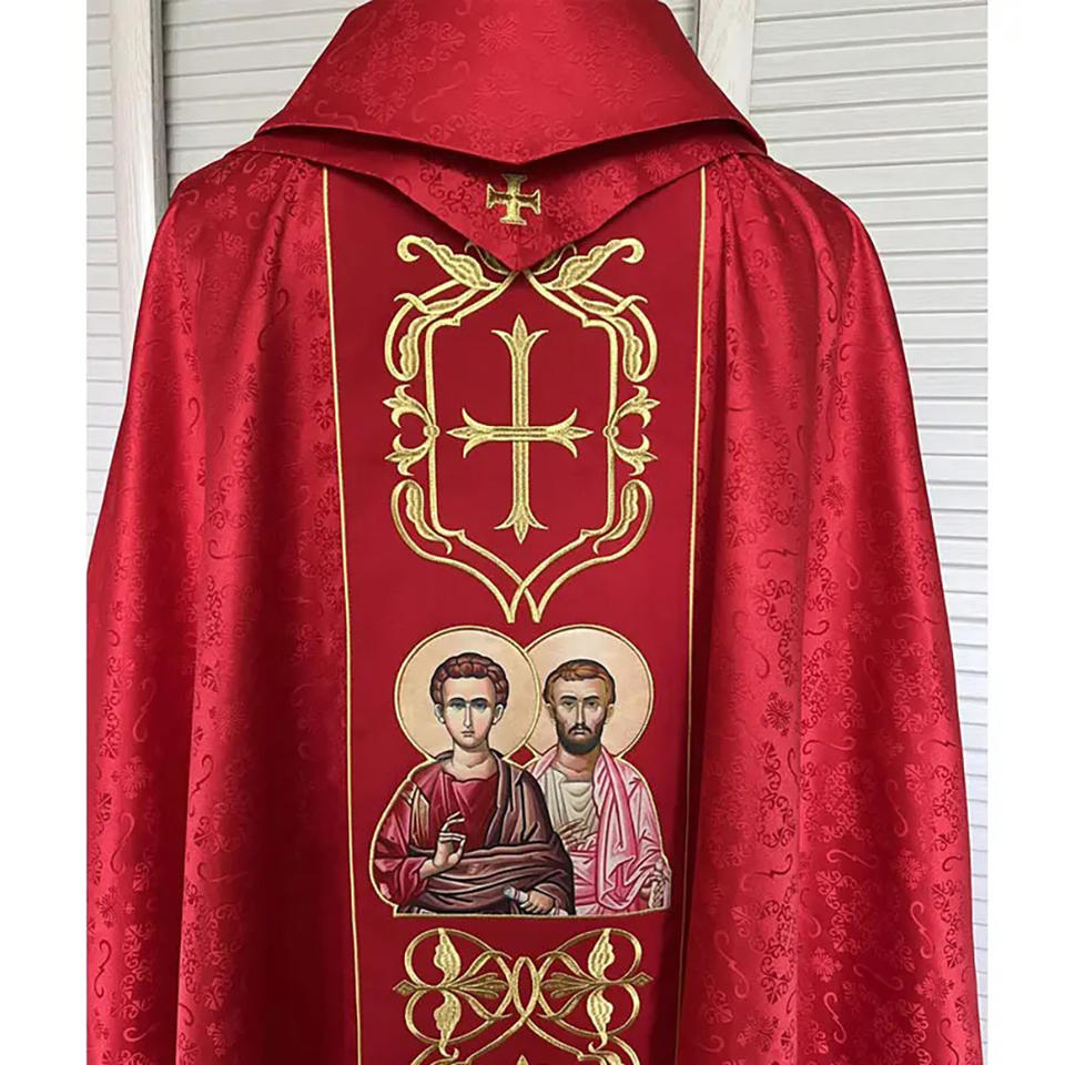 Chasuble de prêtre catholique avec impression de broderie rouge, avec étole inférieure, sur mesure, design de haute qualité, chasuble brodée