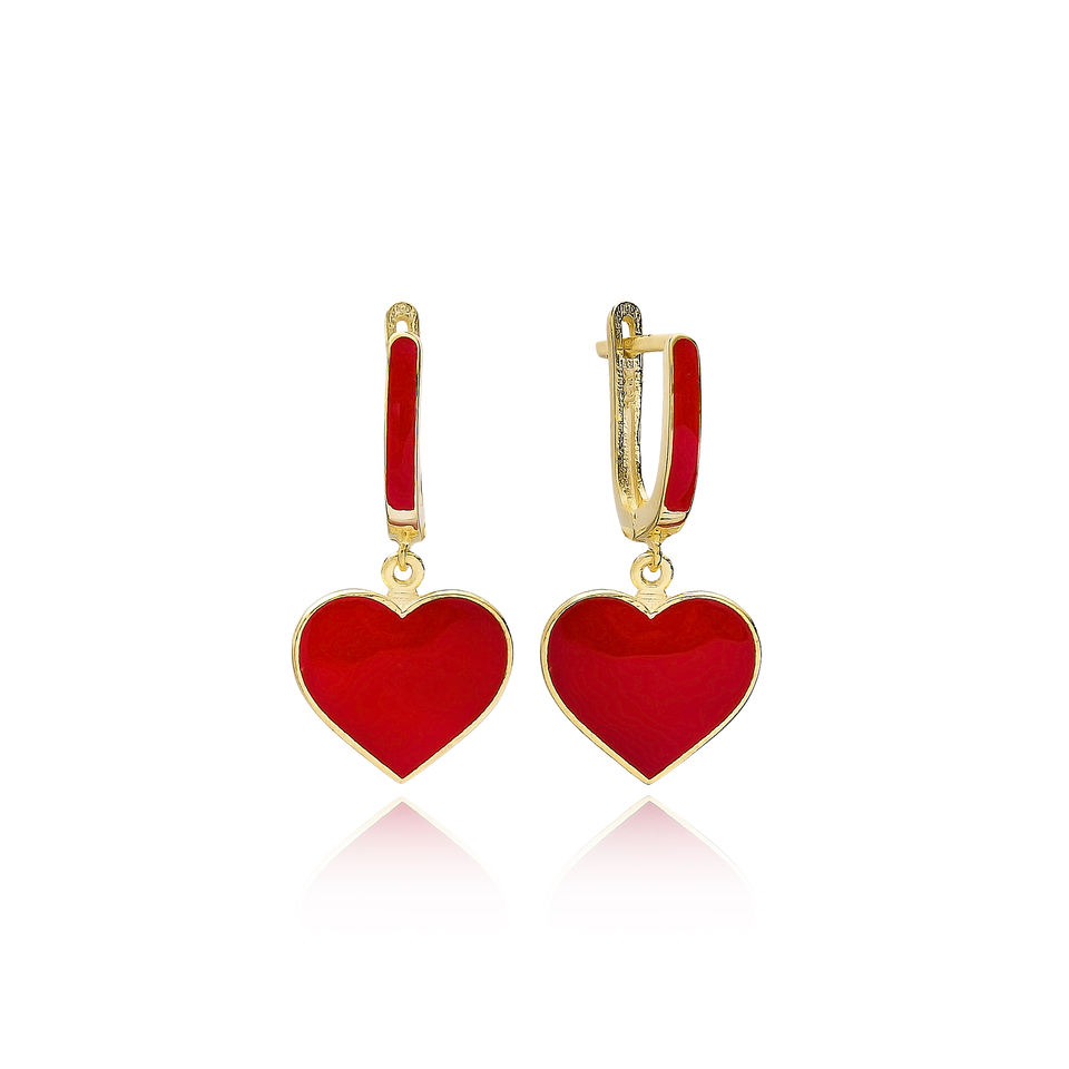 Boucles d'oreilles pendantes en émail rouge avec motif coeur en gros turc en argent sterling 925 fabriqué à la main bijoux fins pour femmes