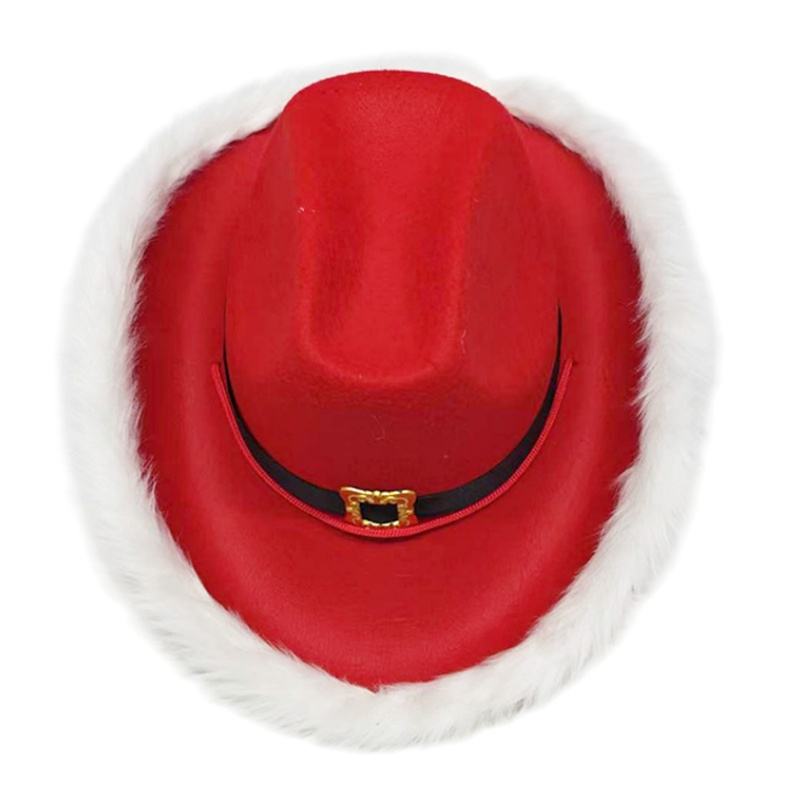 Chapeau de cowboy en feutre rouge avec bordure en fourrure blanche, chapeau de fête de Noël, chapeau festif d'hiver unisexe pour adultes