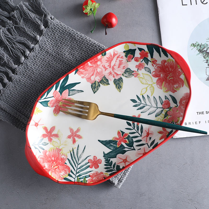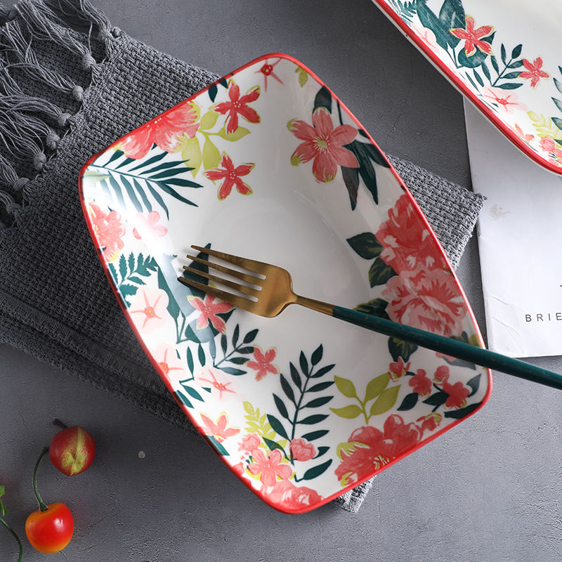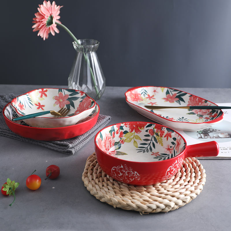 Service de vaisselle en céramique à motif de fleurs rouges, vente en gros, vaisselle, vaisselle en porcelaine