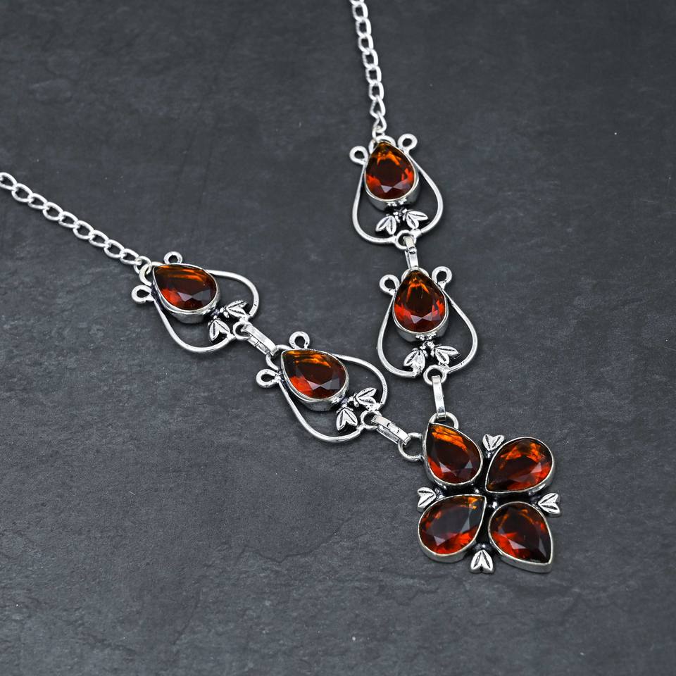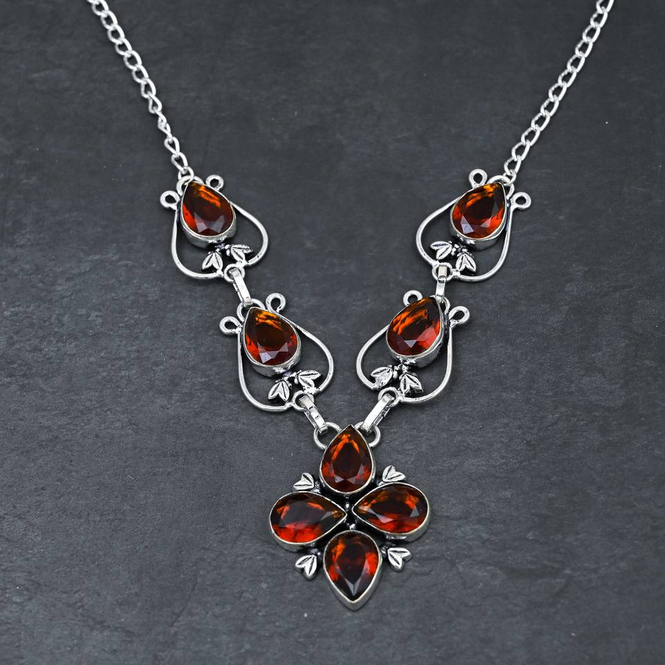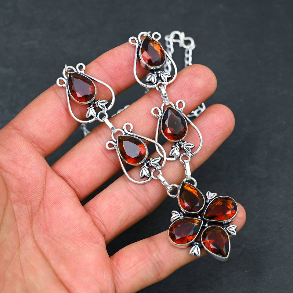 Collier de luxe en argent sterling avec grenat rouge créé en laboratoire, forme poire, 18 pouces - Cadeau de mariage, bijoux
