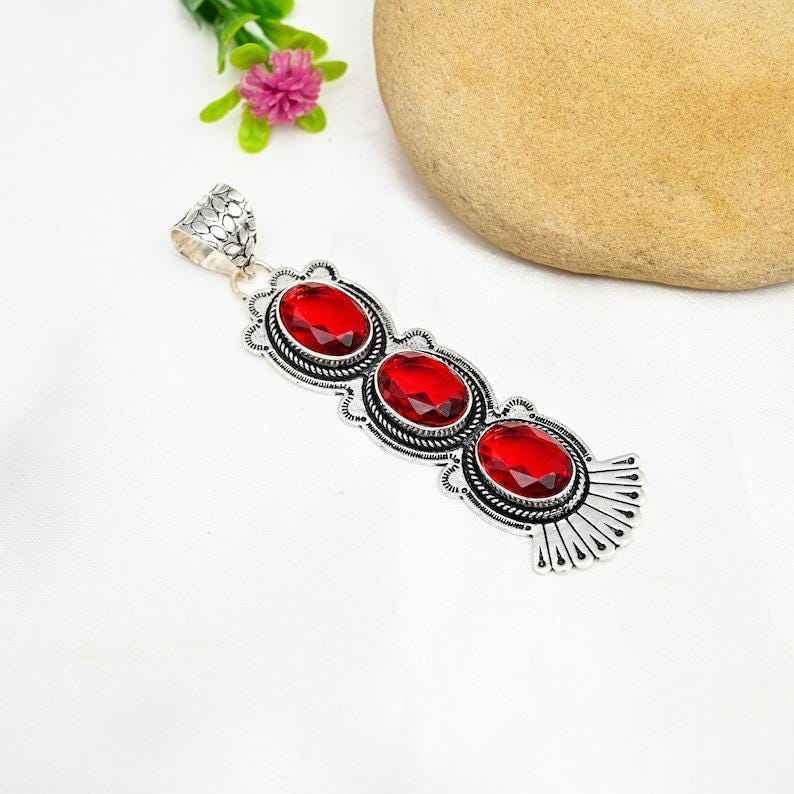 Red Garnet Pendant in 925 Sterling Silver Handmade Gemstone Jewelry Perfect for Wedding Anniversary Gift