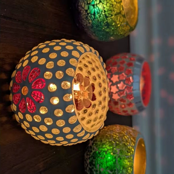 Porte-bougie en verre rouge fait à la main, décoration en mosaïque, bougie votive, promotion en gros, qualité fraîche, décoration de nuit pour la maison
