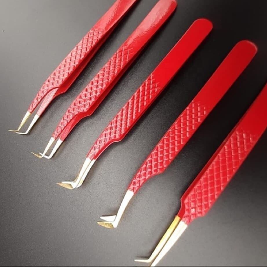 Pince à épiler à pointe en fibre personnalisée en or rouge Pince à cils volumineuse Slim Tip Lash Tech Pince à épiler à 90 degrés 45 degrés pour l'extension des cils