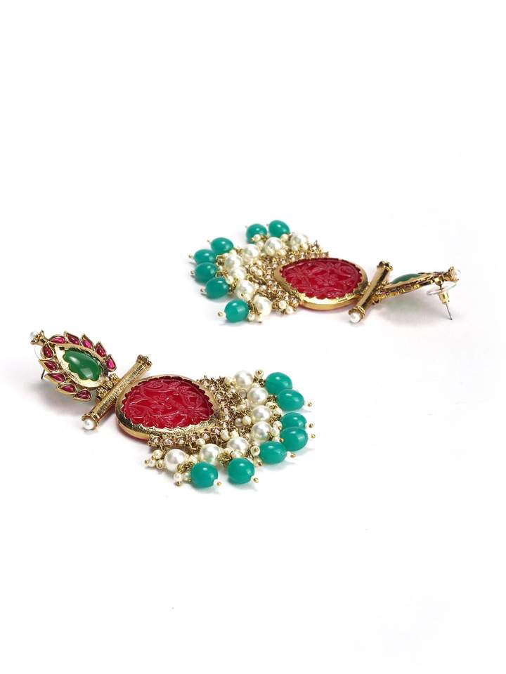 Perles vertes rouges perles pierres plaqué or boucles d'oreilles ensemble de bijoux pour vêtements décontractés et de bureau inspiré de l'Inde