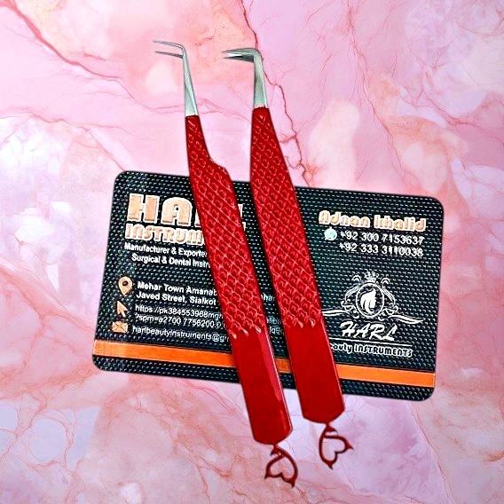 Pince à épiler pour extensions de cils en acier inoxydable, design cœur rouge, pointe lisse pointue, 10 mm, anti-magnétique, 90 degrés, style éventail