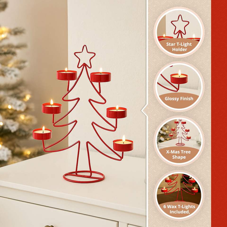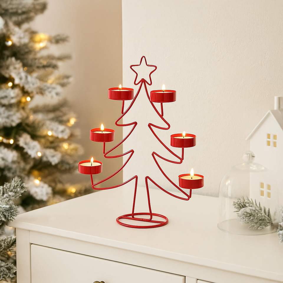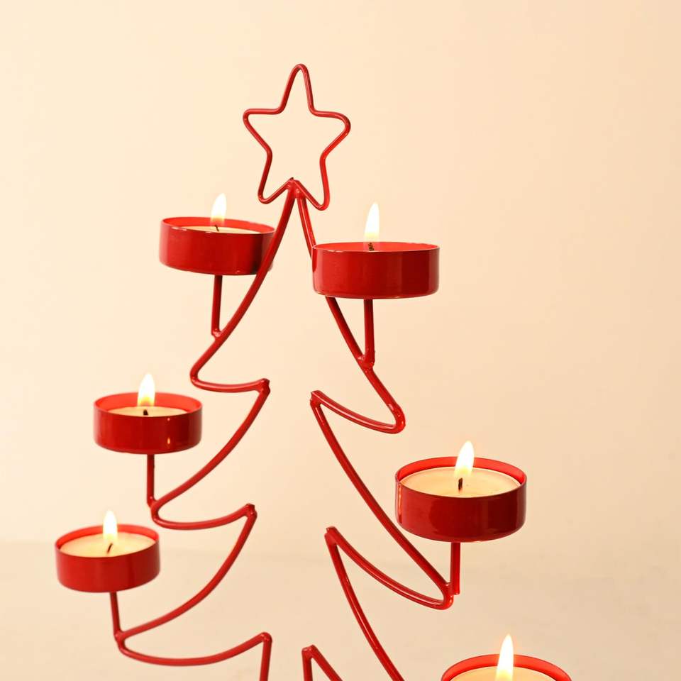 Red Iron Handmade Eco-Friendly Candlestick Holder Tealight Stand Holiday Home Decor Festive Table Centerpiece Christmas