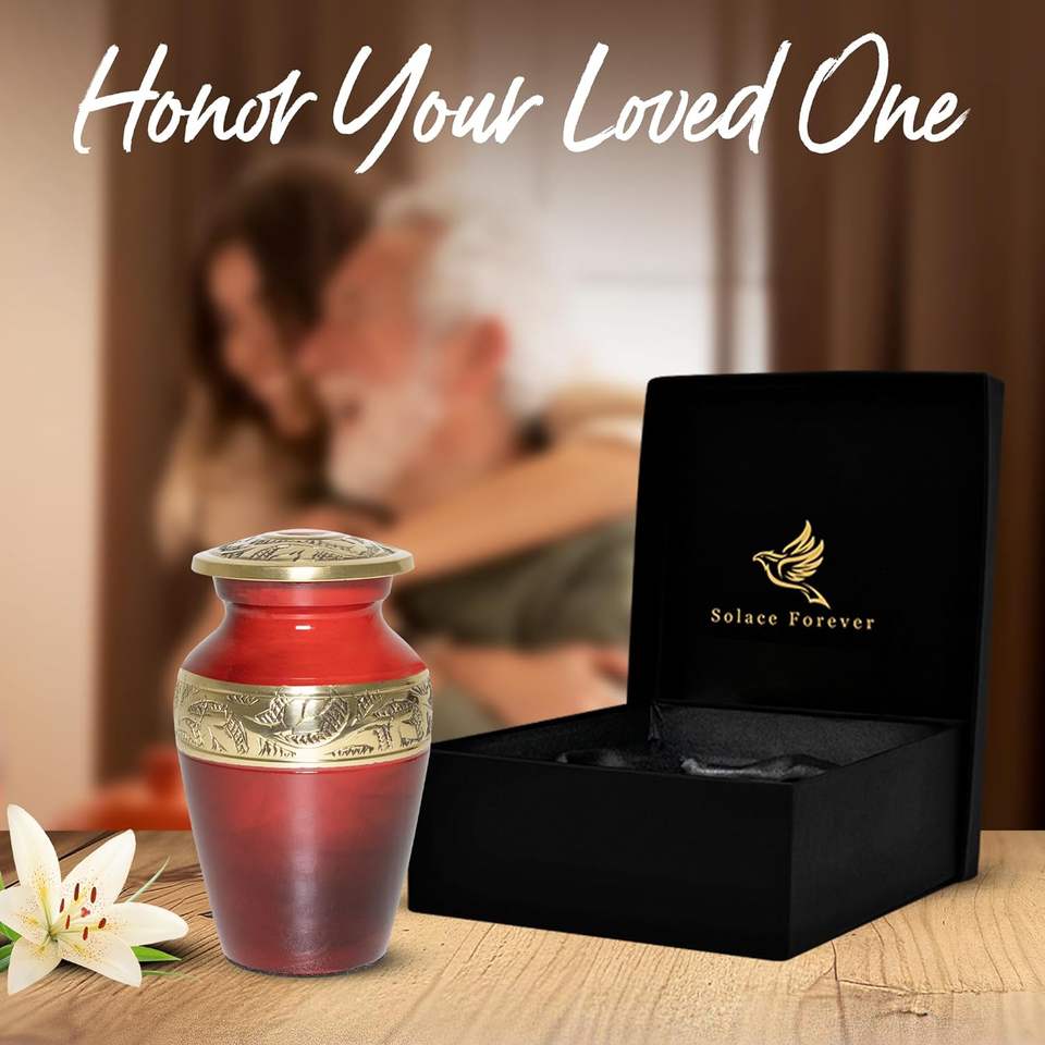 Urne souvenir rouge-Petite pour les cendres humaines avec boîte et sac de qualité supérieure-Mini urne de crémation-Honorez votre bien-aimé avec un petit rouge