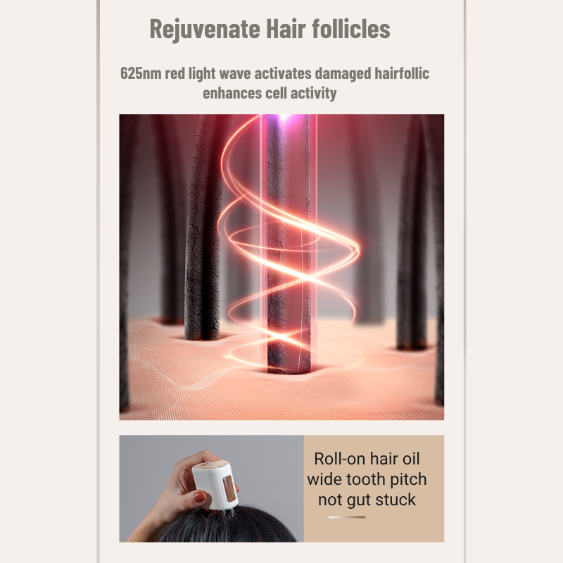 Peigne de croissance des cheveux à lumière rouge Dispositif de massage du cuir chevelu rechargeable par USB avec distributeur de sérum Outil de traitement anti-perte de cheveux