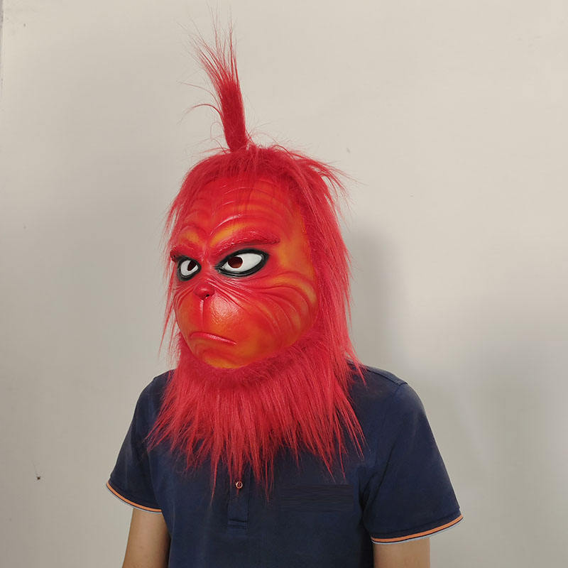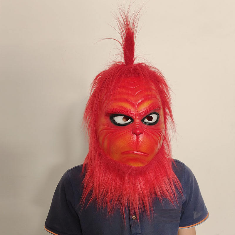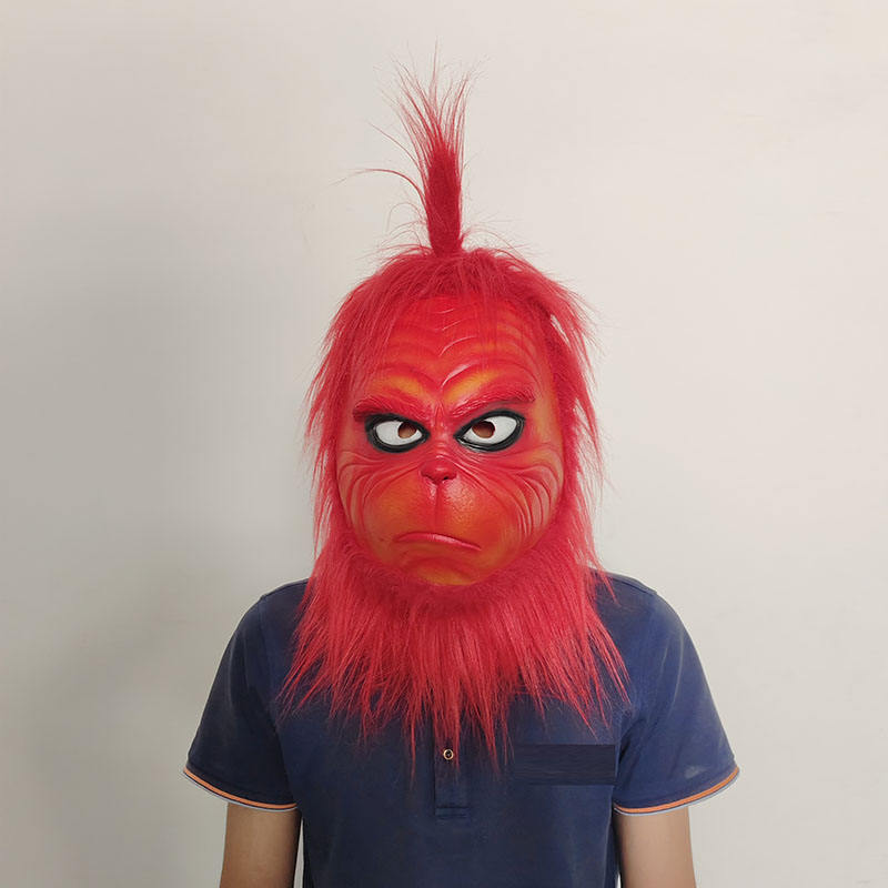 Masque en peluche de cosplay de monstre rouge, masque en latex pour décoration de Noël, masque intégral pour la tête, masque rouge de Grinch