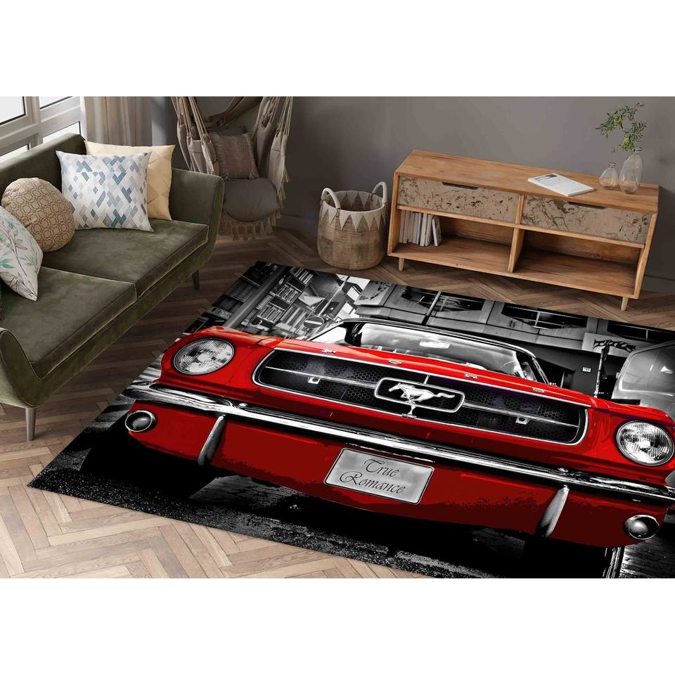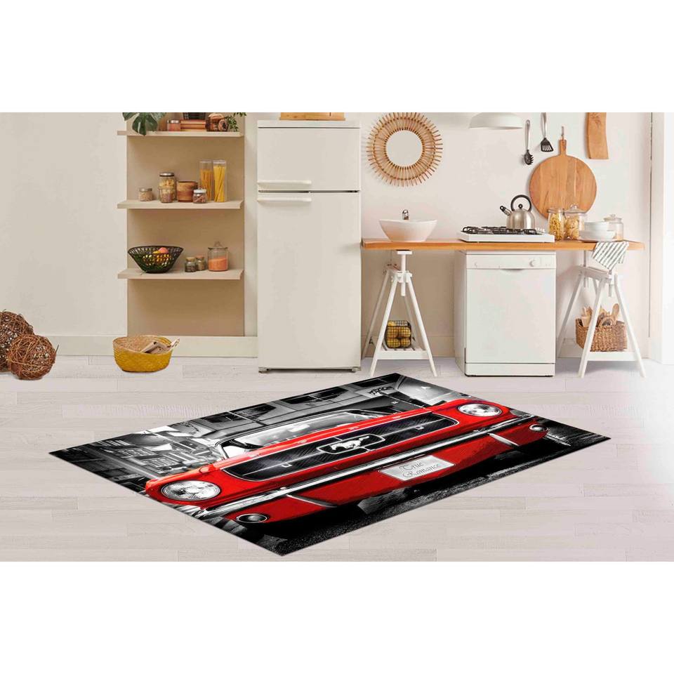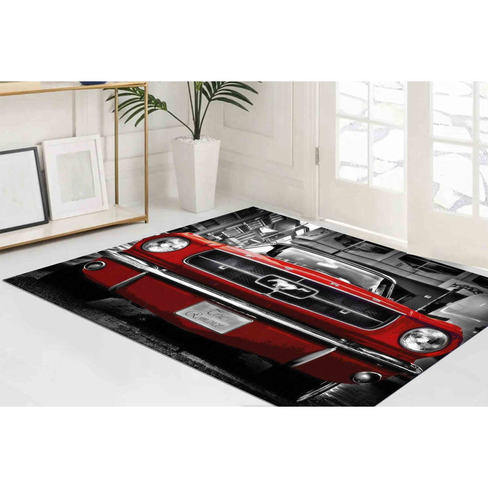 Tapis Rouge Mustang : Décoration de Garage pour Voitures Classiques, Tapis d'Entrée Antidérapant, Tapis en Chenille