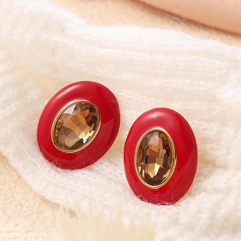 Boucles d'oreilles ovales rouges avec incrustation de cristaux dorés pour bijoux de fête et de mode
