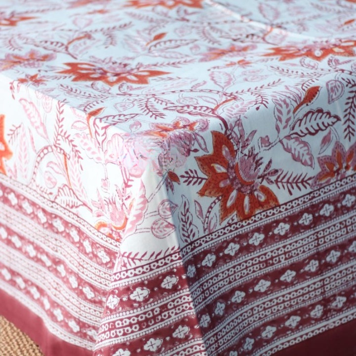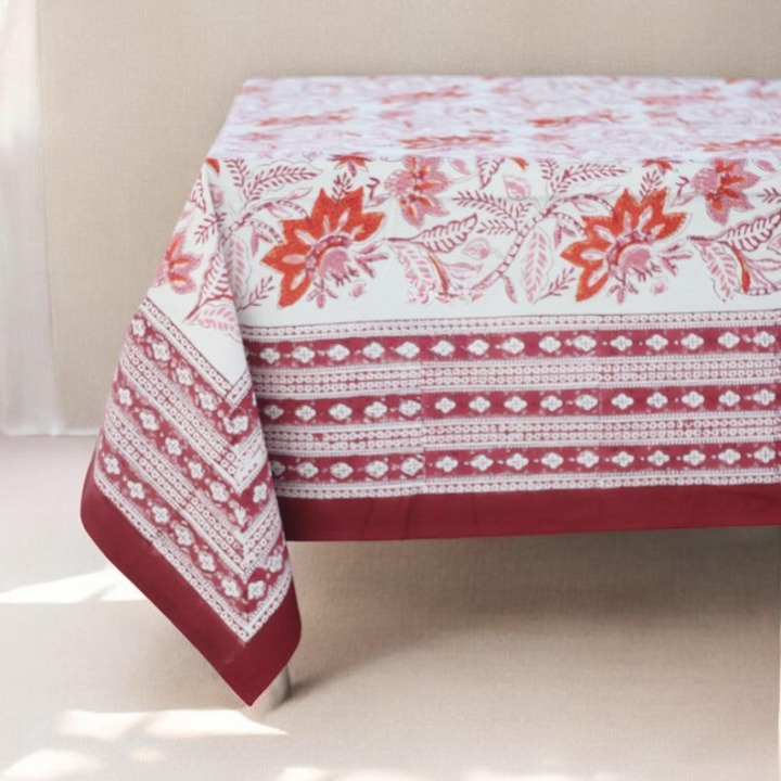 Nappe de table en coton rouge et rose imprimée à la main pour Noël et les mariages