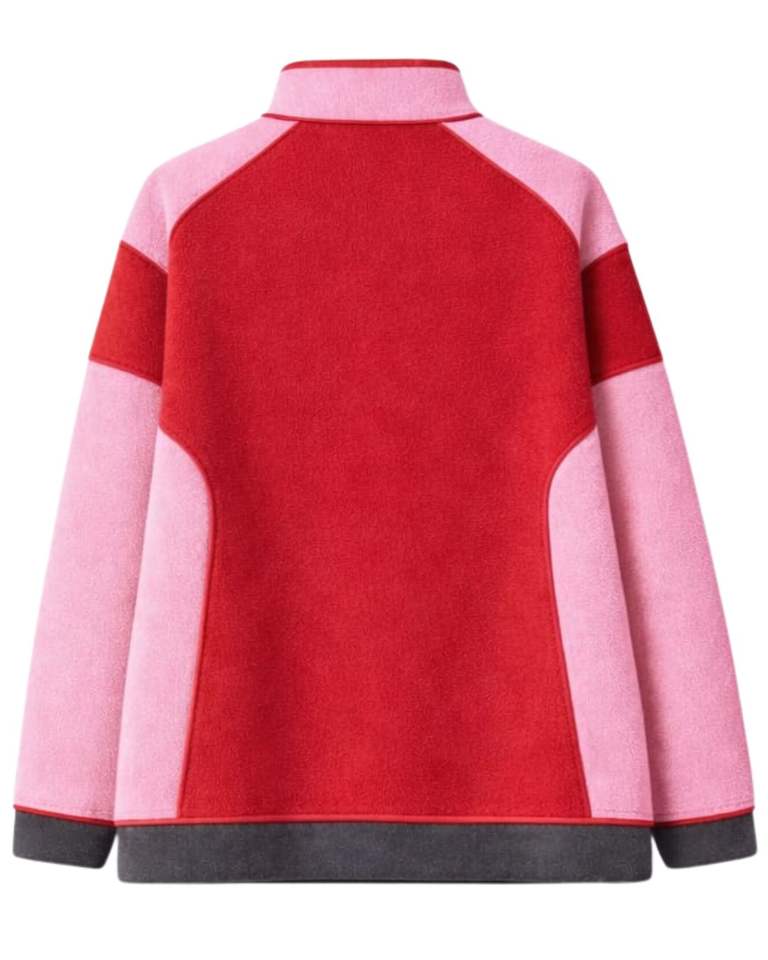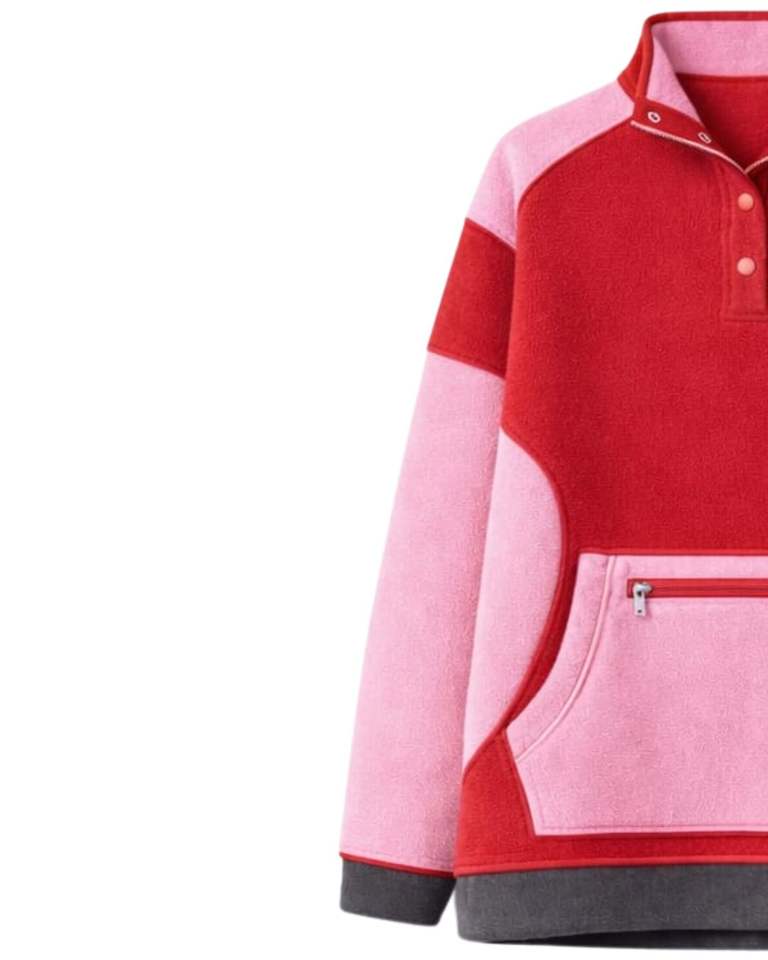 Sweat-shirt d'hiver chaud pour femme, rose rouge, surdimensionné, en polaire, avec col à boutons-pression et poche kangourou, personnalisable