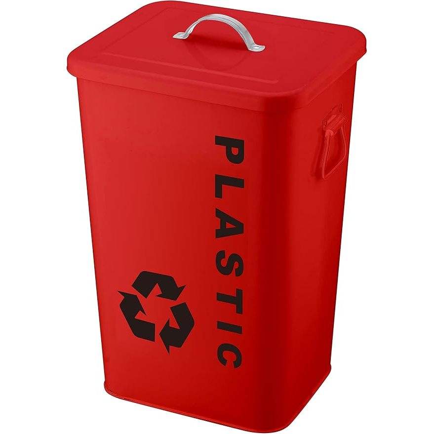 Poubelle de recyclage en plastique rouge 26L avec couvercle et poignée pour le tri des déchets