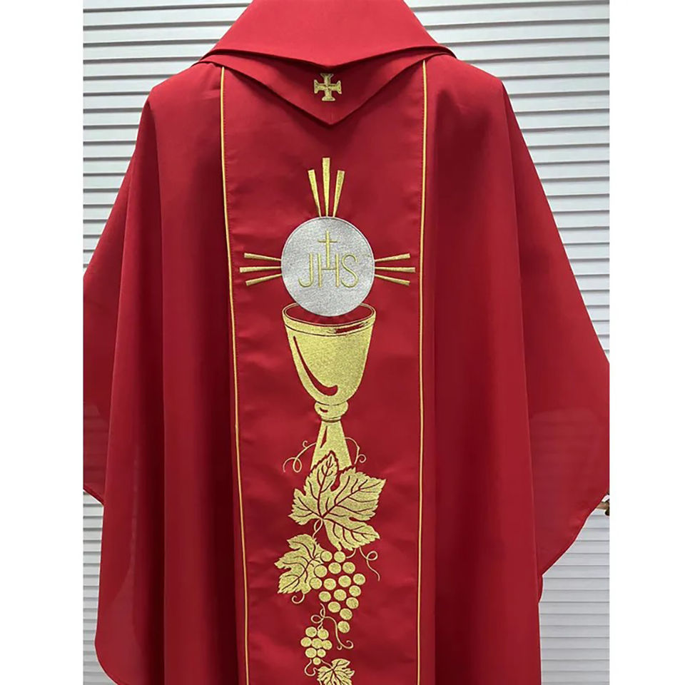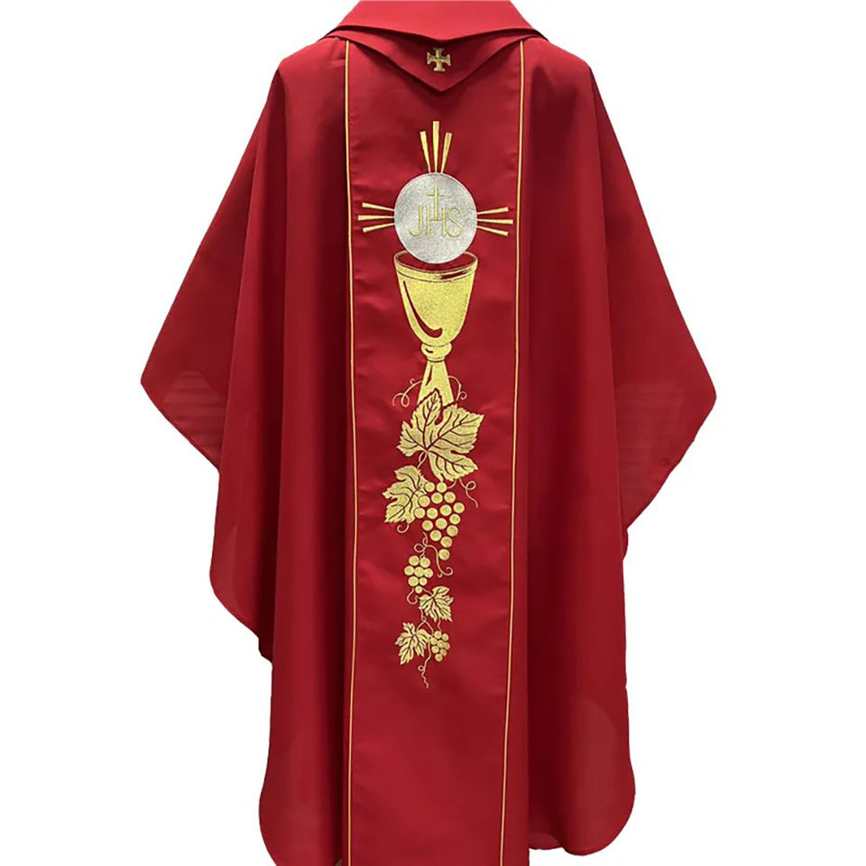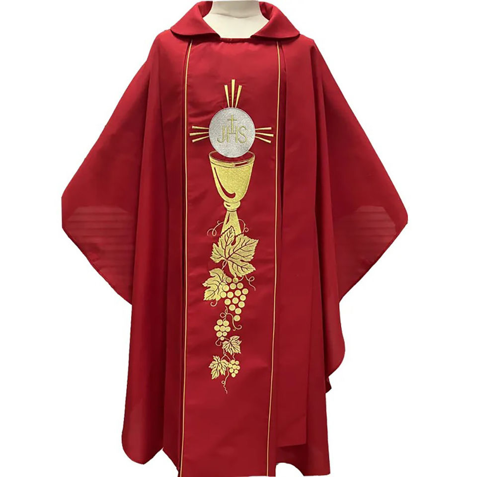 Chasuble de Prêtre en Tissu Polyester Rouge avec Broderie Dorée et Étole 2026 – Nouvelle Chasuble Brodé Sur Mesure