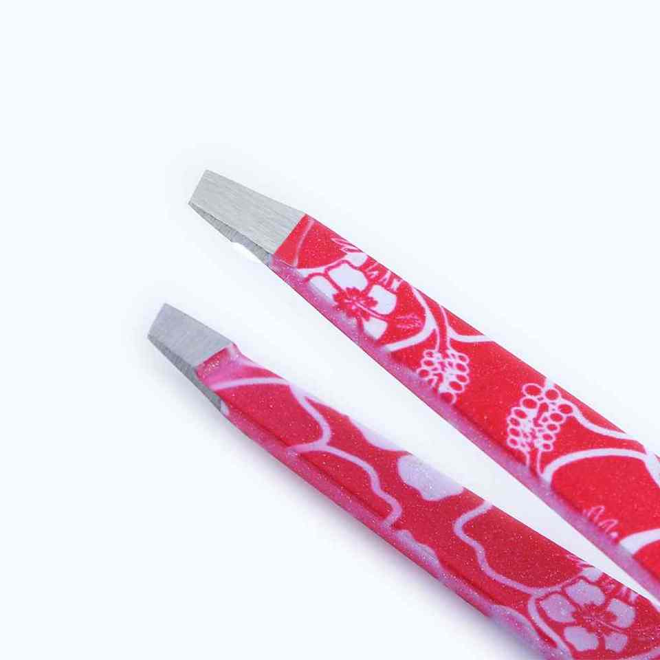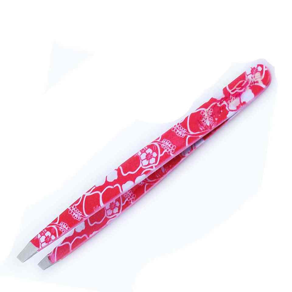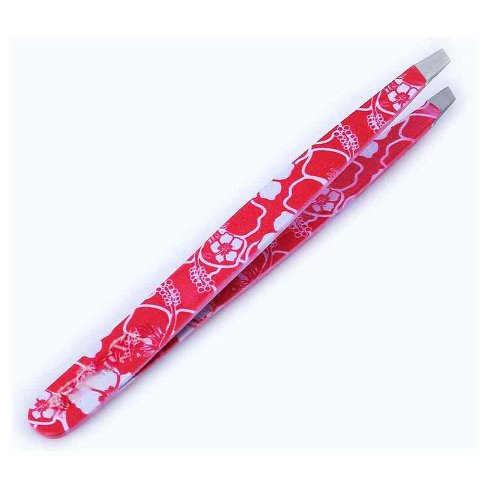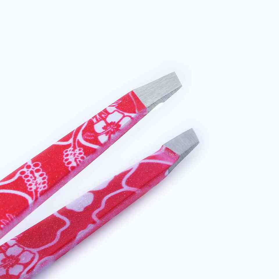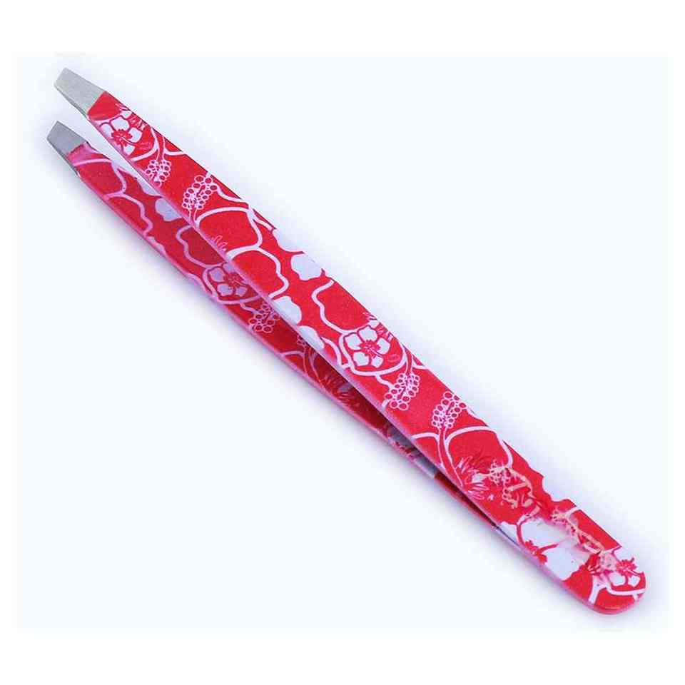 Pince à épiler pour sourcils avec revêtement en poudre rouge et impression florale, pour usage professionnel, idéale pour les acheteurs en gros, avec garantie de qualité.