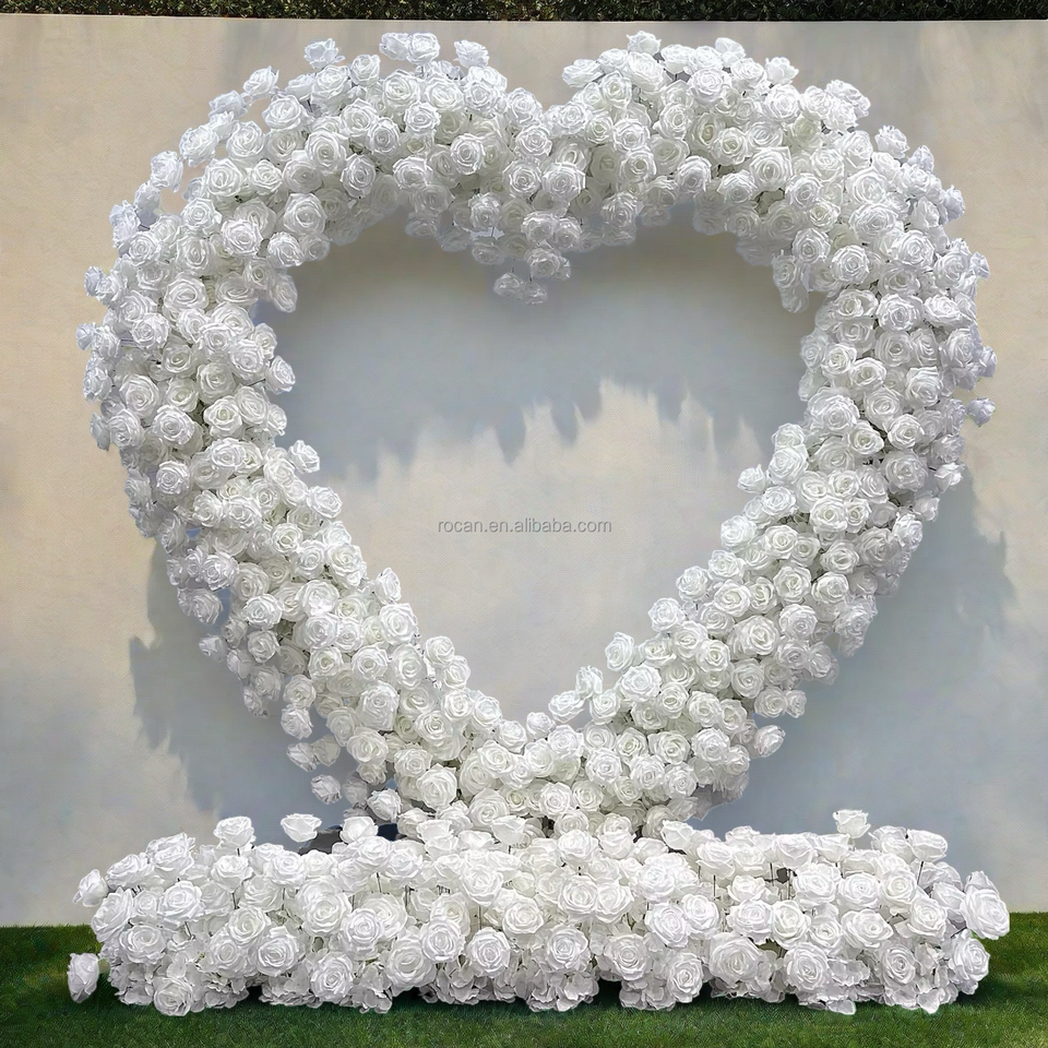 Arche de fleurs en forme de cœur rouge pour demande en mariage, support métallique en forme de cœur avec décoration florale pour mariage